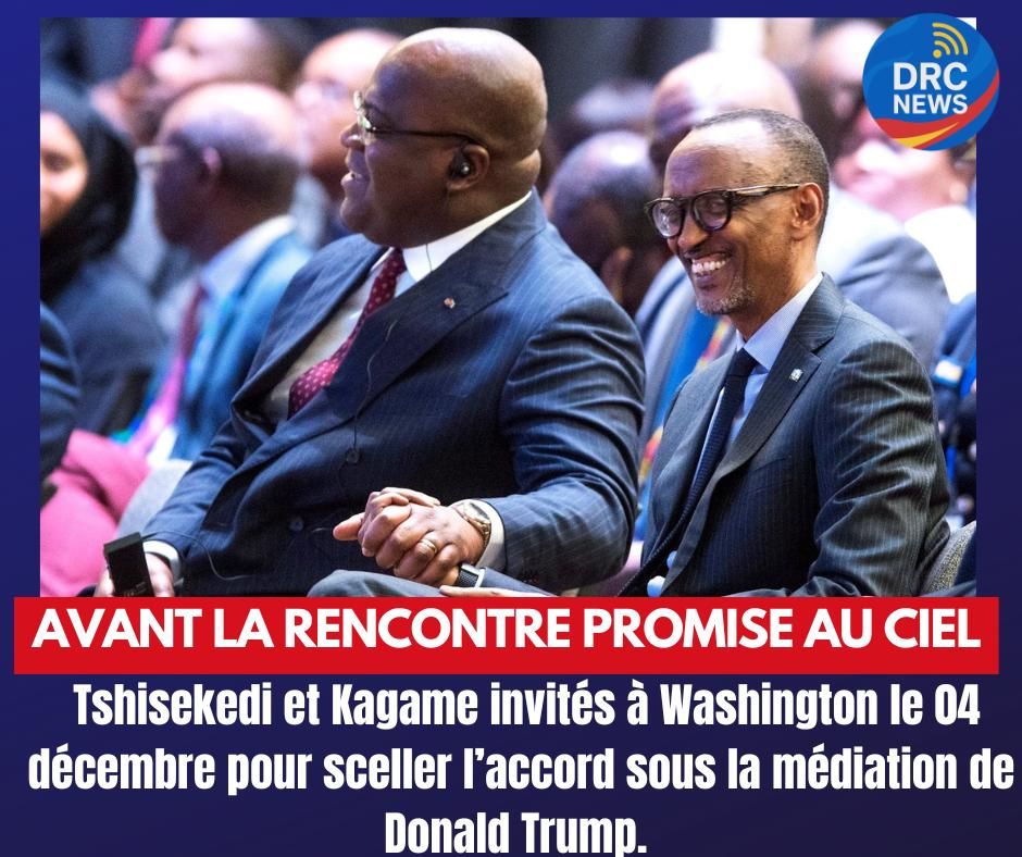 Le Président de la République démocratique du Congo, Félix Antoine Tshisekedi, et son homologue rwandais, Paul Kagame, pourraient se rendre à Washington d’ici le 4 décembre sur invitation de l’ancien président américain Donald Trump. L’objectif de cette rencontre serait la signature d’un accord de paix visant à apaiser les tensions persistantes entre Kinshasa et Kigali.
